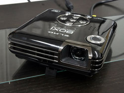 解像度はWXGA(1,280×800)で、0.45型のDMDを採用。輝度は300ルーメン、コントラストは1,000対1。光源にはRGBの3LEDを採用し、専用開発の光学エンジンによって色再現性を高めているという。なお、電源には付属のACアダプターを使用するが、前述のように外部バッテリーバンドル版も販売する。