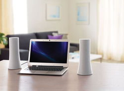 左右のスピーカーが分かれた構成となっており、左右チャンネルそれぞれに、50mmドライバー×2基、76mmプレッシャードライバー×1基を搭載する。360度全体に広がる音作りとしている。