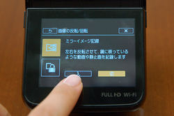 「ミラーイメージ記録機能」は、ダンスの振り付け練習などに便利。1ファイルごとに繰り返し再生できるリピート再生機能も用意しており、見たいクリップだけ選んで反復練習することもできる。なお、通常モードで撮影した動画を、カメラ内でのみ反転再生する「ミラーイメージ再生機能」も用意されている。