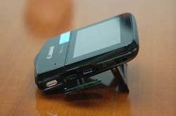 本機の大きな特徴は、対角160度(動画)/170度(静止画)のワイドアングルレンズを搭載し、机の上などに置いて撮影できる角度調整機能付きスタンドを備えていること。2.7型バリアングル液晶で、自分撮りなどもおこなえる。さらに、Wi-Fiを内蔵。スロー記録/倍速記録などにも対応する。ボディは約76W×22H×96Dmm/約180gとコンパクト。様々な撮影スタイルを実現するのをアピールポイントとしている。内蔵メモリは搭載せず、microSDHCカード(スピードクラス10以上推奨)に記録する方式。