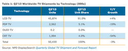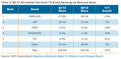 ディスプレイサーチは、2013年第2半期の薄型テレビ市場世界売上シェア調査結果を発表した。