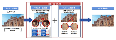 BDソフトやデジタル放送など4K未満のソースを高画質で4K表示するための超解像機能「4Kファインリマスターエンジン」を搭載。入力された映像信号を、内蔵する12万通りの映像データベースと照合し、画質補正をおこなう「リマスター超解像」と、映像の質感を高める「ディテール超解像」の組み合わせにより、フルHDやSD映像を4K映像にアップコンバートする。補正に使用されるデータベースについては、デジタル放送用、BD用などソースごとに用意されている。ネイティブの4K映像に対しても、高解像度ソース用の映像処理を行う。