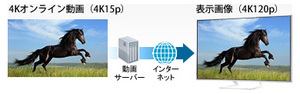 インターネットブラウザー機能も4K表示に対応し、4K表示に対応したWEBサイトを4K画質で表示することができる。さらに、インターネット上で公開されている4K動画の再生にも対応。本機で画質補正を行うので、コマ数の少ない動画もより高画質で再生できる。