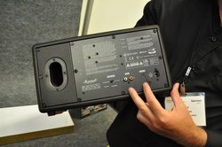 マーシャルの楽器用アンプを思わせるデザインのワイヤレススピーカー「STANMORE」が出展されていた。本体には20W×2のクラスDアンプを内蔵。周波数特性は45Hzから22kHzをカバーする。サイズは350W×185H×185D、質量は5.1kgと重厚なつくりだ。カラーバリエーションはブラックとクリームの2色。