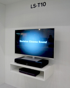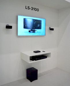 オンキヨーブースの注目は「envision cinemaシリーズ」と名付けられたホームシアターシステム群。すでに欧州で発売済の2.1chシステム「LS-3100」に加えて、バーサラウンド「LS-B50」「LS-B40」、シアターラック「LS-T10」が初披露された。