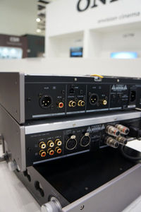 オンキヨーとティアックは共同でブースを構えている。ギブソンのギターの演奏をティアックのPCMレコーダーで録音して、それをオンキヨーのシステムステレオやヘッドホンで再生する―そんなグループ会社同士の有機的なつながりが具体的にイメージできる展示になっている。