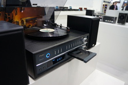 ひとつめはレコード、CD/ラジオ、スマホ(Bluetooth)すべてに対応する「家族3世代ファミリーコンポ」、ターンテーブルシステム「LP-P1000」。欧州では今秋発売予定でブラックとブラウンの2色展開。想定価格は399?449ユーロ。出力は25W(4Ω)。