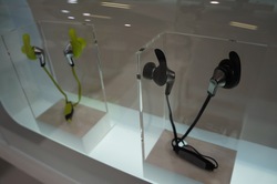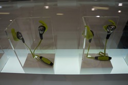 そして、ブース内で特に力を入れた展示を行っていたのは、アスリートがトレーニング中に使用するのに適した装着感と防汗機能を備えたという“iSport”シリーズだ。イヤホンは3シリーズで「遮音性に大きな違いがあるのがポイント(展示スタッフ談)」という。