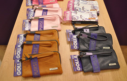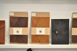 また年末からのコレクションとしてイタリア製の本革をあしらって、温もりのあるデザインに仕上げたスマートフォンやタブレットケース、PC用バッグなども展示されていた。