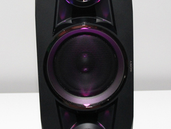 内部には、6.5cmユニットを2基と16cmサブウーファーを1基搭載する。出力は20W+20W+60Wの最大100W。低音の再現力を高めている点がポイントで、最大音量時には高音圧で体に響くような低音再生を狙い、音量を絞るにつれて低域を広げていき、深い低音の再生を実現するよう工夫している。