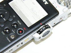 LR独立調整ボリュームは引き続き搭載。また、RECボリュームガード機構、RECボリューム用バックライトを新たに搭載した。また、ユーザーがカスタマイズできる「F1/F2ボタン」を採用し、頻繁に使う機能の割り当てができる。