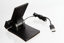ボディにはAK100やAK120と同様の高剛性アルミ素材を使用。両機のUSB-DAC機能を使ったり、充電を行ったりする際のスタンドとして想定されており、スタンド部にはmicro BタイプのUSB端子がドッキング用に搭載されている。USBケーブルについては取り外しはできない。