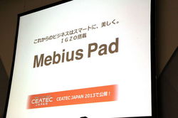 シャープは、IGZO液晶ディスプレイを採用したWindows 8.1搭載のタブレット「Mebius Pad」を開発、2014年1月以降に発売する。法人市場を中心に、個人利用でも活用できるタブレットとして開発したとしている。