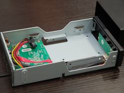 本体はファンレス設計。シャーシはスチール製で、フレーム強度を高め振動を発生しにくくしている。特にエッジ端を折り返す加工とすることで、実質的な板厚を向上させるとともに、金属板端で発生する共振音も抑制。3.5インチのハードディスクを取り付けることで、特に大きな剛性を確保できるとしている。また、中の磁力線はシャーシに接触しないよう配置するなど、音質対策を徹底した。