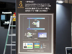 また、キオスク端末でフルHDコンテンツを販売するというユースケースも紹介。FelicaやTransferJetを複合的に搭載したメモリーカードをキオスク端末にかざしてフルHDコンテンツを購入し、帰宅後に自宅のテレビに接続したクレードルに置くだけでコンテンツを再生して楽しむといったソリューションを提案している。