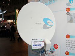 DXアンテナは、BS/110度CSアンテナの新製品「BC452APCK」を出展。アンテナの角度を地域別に調整しやすく工夫した機構や、取付金具の穴をダルマ穴にして取付を簡単にした点が特徴だ。