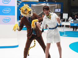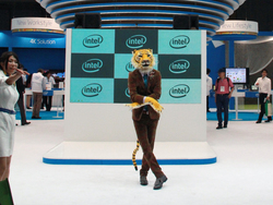 インテルのブースでは、ワイヤレス通信技術「インテルWiDi」のほか、“4Kソリューション”と題して開発中のGPU「XJiveスウィングウェブエンジン」のデモを行っている。