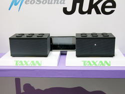加賀ハイテックは、“スマホを中心としたシームレスな音楽の空間”をテーマに、同社が展開するTAXANブランドの“Meo”シリーズ新製品「Juke」「Shower」「Splash」の3機種を展示している。いずれもBluetooth機能に対応するスピーカーで、11月末の発売を予定。