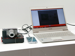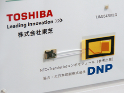 また、ブース内ではTransferJetとNFCを両方搭載したコンボモジュールも参考出展している。「TransferJetとNFCは機能的に親和性が高く、両方を搭載した製品の開発も今後見込まれる」(同社説明員)。
