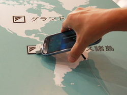 そのほか、TransferJetを使用して、実際の本屋さんで電子書籍を購入できるシステムも提案していた。これは、欲しい書籍の実物をレジに持って言ってバーコードを読み取り、専用機にTransferJet対応のスマホ/タブレットをかざすと、TransferJet経由で書籍のデータをダウンロードしてそのまま購入できるというもの。