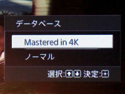 新たに「“Mastered in 4K”モード」を搭載。「リアリティークリエイション」メニューにおいて「標準」と「“Mastered in 4K”」を選択できるようにした。同モードでは、“Mastered in 4K”BDソフトの視聴時に、オーサリング時と同一のフィルターでアップスケーリングを行うことで、オリジナル4Kマスターの画質を忠実に再現するとしている。
