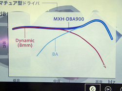 各ドライバーは1基ずつ搭載。繊細な高音を耳へダイレクトに伝えるようBA型ドライバーをポート近傍にストレートに配置しつつ、中低音域に強いダイナミック型ドライバーはBA型ドライバーとの音干渉を抑えるように後方斜めに配置している。ダイナミック型ドライバーの口径は8mm。「DBA700ではデザイン上の制約もあってBAドライバーを斜めに配置したことで音質への弊害もあったため、今回は水平に配置した」(同社説明員)という。