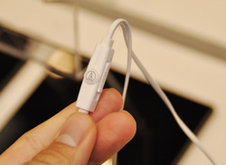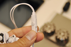 イヤーチップは、音漏れを防ぎ迫力ある音を再生するというCHX7専用のものをS/Mの2サイズ用意。ケーブルは新開発の“グルーブド・フラットコード”を採用。縦方向に溝を入れたフラットケーブルで、タッチノイズを軽減。ケーブルも絡みにくくなっている。インラインのマイク付リモコンは4極仕様のシングルボタンタイプ。