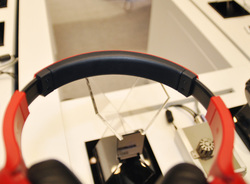 ハウジングにヘッドホンアンプを内蔵しているのが大きな特徴。 オーディオテクニカ初のアンプ内蔵モデルとなる。「ノイズを除去し、音楽信号だけを増幅できるようにした」(同社説明員)。