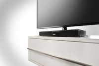 最大50型(27kgまで)のテレビと組み合わせが可能。トゥイーターと楕円ウーファーから成る2ウェイ構成のスピーカー。ドルビーデジタルやAACに対応する。またBluetooth(aptX対応)機能も搭載し、スマホなどの音楽をワイヤレスで楽しむことも可能だ。