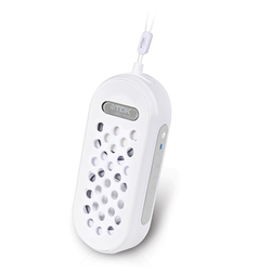 Bluetooth ver.2.1+EDRに準拠。対応プロファイルはA2DP/AVRCP。バスルームに音楽プレーヤーを持ち込まなくても、スピーカー側でボリューム調整や音楽の再生、停止、曲送り、曲戻しの操作が可能。さらに、ストッパー付きストラップが付いているので、置いてもぶら下げても使うことができる。