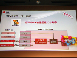上述の通り、次世代動画圧縮形式「HEVC」に対応するデコーダーを内蔵している。このHEVCデコーダーを経由することで、USB経由で入力される4Kコンテンツのダイレクト再生にも対応する。