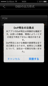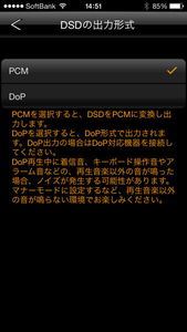 DSDの伝送は、PCMまたはDoPが選択可能。PCMを選択すると、DSD音源をPCMに変換して出力する。DoPではPCMのフレームを使って、DSD信号を伝送できる。ただし、DoP再生中に着信音やキーボード操作音など楽曲以外の音が鳴った場合、ノイズが発生する可能性があるという。同社ではマナーモードに設定して再生することを推奨している。