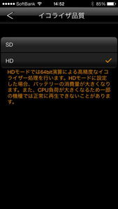 イコライザーの機能も充実し、16,000以上のバンドを備え、タッチ調整可能なリニアFIRイコライザーを備える。音質劣化が少ない状態で自在にコントロールできるという。またイコライザーは精度がSD/HDから選択でき、HDモードでは64ビット演算により、より精密なイコライザー設定 が可能になるが、バッテリー消費量やCPU負荷が大きくなる。一部機種では正常に再生出来ない場合もあるという。