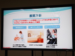 主な展開方針としては、前述のように病院向け、ホテル向け、フィットネス向けなどを予定。病院向けについてはテレビ視聴や電子書籍閲覧、電子カルテ連動など、ホテル向けについてはVODサービスなど、フィットネス向けについては各種フィットネス機器との連携などを提案していく。具体的な価格については検討中という。