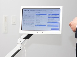 ITテレビモニターとは、ネットサービスや業務用システムと連携し、導入する顧客ごとにカスタマイズが可能なソリューション型テレビ。タッチパネル操作に対応しており、通常のテレビ放送や多彩なネットサービスが手軽に楽しめるだけでなく、例えば病院内で使用する場合は電子カルテの表示や病室からの食事の注文など、より質の高いサービス提供が可能となる。