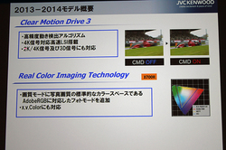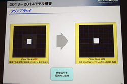 残像低減技術「クリア・モーション・ドライブ」も一新。動き検出アルゴリズムや高速LSIの採用により、動きの速いシーンなどに発生する残像感を大幅に低減したという。同技術は4K信号や3D信号にも対応している。