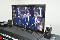 192kHz/24bit対応のUSB-DAC内蔵アクティブスピーカー「KS-3HQM」のリスニング展示がメイン。HQMストアで展開するハイレゾ音源のリスニングなどが紹介されている。