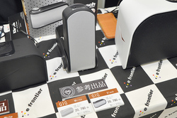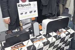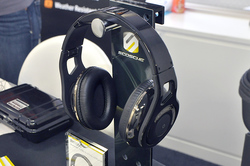 フロンティアファクトリーのブースには、昨日発表されたばかりの米Klipschの新ヘッドホン「STATUS」が早速登場していた。