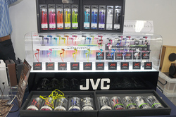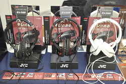 JVCケンウッドのブースでは、「ライブビートシステム」を採用したダイナミック型オーバーヘッドホン「HA-SZ2000」「HA-SZ1000」、カナル型イヤホンの「HA-FXZ200」「HA-FXZ100」の音を試聴することができる。