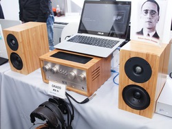 また、参考展示としてオーディオシステム「STEREO 30」が出展された。本機はアンプ部の筐体とスピーカー部に竹を使ったことが特徴。アナログ入力の他、各種デジタル入力も備え、既存の様々なメディアに対応するという。ヘッドホン出力も搭載。国内で登場しているiFi-Audioの製品ラインナップからすると意外なだけに、注目を集めていた。価格や国内での登場時期は未定とのこと。
