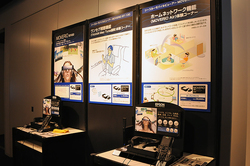 これらのプロジェクター新製品のほかにも、3D/2D対応の“シースルーモバイルビューアー”「MOVERIO(モベリオ)BT-100」の体験コーナーも用意されている。「ホームネットワーク機能」や「(コンテンツ)持ち出し機能」などにより、様々な使い方できるようになった“MOVERIO”の魅力を体験することができる。