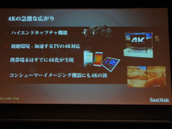 4K撮影においては記録メディアにも高速化と大容量化が要求されることを改めて説明し、新製品がまさにこうした時代のニーズに応えるものであると語った。