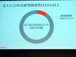 また「今年は全世界で約6,000億円の売上に達しようとしている」と同社の事業規模に触れる一方で、「大事なのは新製品の開発。売上の10%以上を開発につぎこんでいる」とコメント。最先端の技術を投入した製品を日々開発し続けていることをアピールした。