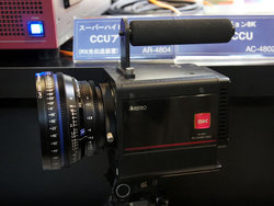また、8K撮影対応のカメラヘッド「AH-4800」も展示。3,300万画素のイメージセンサーをベースにしたカメラヘッドで、駆動回路を約10cm角の筐体に内蔵することで質量2kgという小型化を実現した。