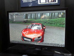 4K関連では、東芝がブースの一角に32型の4K対応液晶モニター「TUM-32PRO1」を展示。同製品は3,840×2,160解像度に対応しており、Adobe RGBカバー率99%を実現。工場出荷時に一台一台液晶パネルの輝度や色ムラを測定し、ムラを補正する回路を搭載することで高均一画面にしているとのことで、そのほか超解像技術も搭載している。