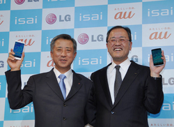 KDDI(株)からは代表取締役社長の田中孝司氏が出席し、コラボレーションの内容について語った。田中氏は「isaiはKDDIからLGへ企画を呼びかけて実現した新製品」である説明。田中氏は「LGと当社のお付き合いはとても古くからスタートしている。LGと共同開発について話を始めた時期は、互いにスマートフォンビジネスを試行錯誤していた頃だった。もっと我々の思いを込めたスマートフォンを作りたいという考えを、LGに共感していただいたことで、isaiの開発がスタートした」と述べた。