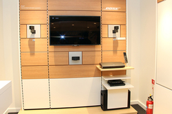 また表参道ヒルズ店は、直営店としては初めて「プレミアム・ルーム」が用意されている点もポイント。「プレミアム・ルーム」では、部屋の壁3面に一体型ホームシアター「Bose VideoWave III」やLifeStyleシリーズなどを設置。椅子に座ってくつろぎながら試聴することができる。専門知識を持ったスタッフが対応してくれるので、システムを体験することはもちろん、実際にどうやって導入したらいいか、といった相談をすることも可能だ。