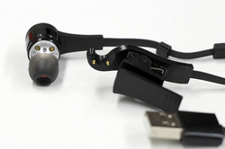Bluetoothモジュールやバッテリー、マイクを本体に内蔵しつつ、16gの軽量ボディを実現。50cmのフラットケーブルで、頭の後ろに回り込ませるかたちで使用する。
