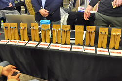 オーディオテクニカは、2階の会場入口のすぐ脇にブースを構えている。注目なのは、同社の木を使ったヘッドホン“Wシリーズ”の歴代モデルを一堂に集めて展示・試聴デモを行っている点だ。時代を追って各モデルを聞き比べることで、音の変遷や装着感の違いなどを体験することができる。
