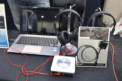 JVCブースで注目を集めていたのは、参考出展されていたハイレゾ対応ヘッドホンアンプのモックアップ。先日の同社発表会でもモックが披露されていた(関連ニュース)。音を聴くことはできず、価格や発売日、仕様についても全くの未定。「来年のどこかで発売できれば」(同社説明員)とのことだった。